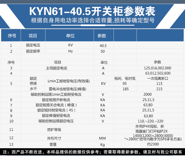 KYN61-40.5型鎧裝移開式交流金屬封閉開關柜系三相 交流50Hz,額定電壓40.5kV的戶內成套配電裝置。作為發電廠、變電站及工礦企